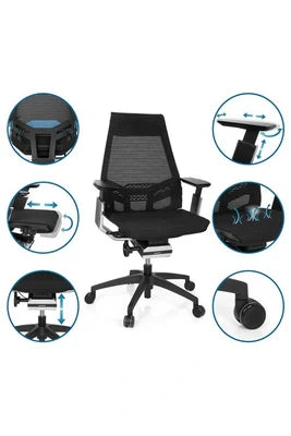 Fauteuil De Bureau Hjh Office Chaise De Bureau / Chaise Bureau Genidia Smart Black Cm Tissu Maille Noir Al Chrome