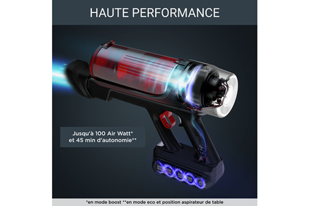 - Autonomie : jusqu'à 45 minutes - Puissance d'aspiration : jusqu'à 100 aw