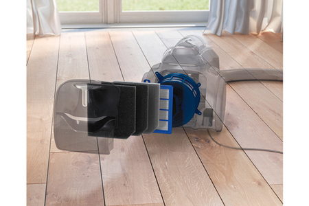 - Accessoire 3 en 1 clipsé sur la poignée, brosse multi-position