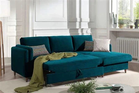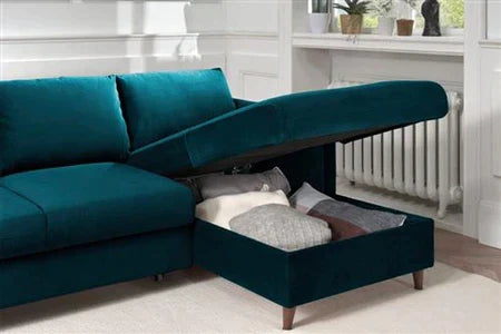 Canapé D'angle Lisa Design Brooke - Canapé D'angle Convertible - Avec Coffre - 4 Places - Style Contemporain - Droit - Bleu Canard