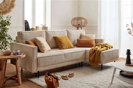 Canapé d'angle Lisa Design Charlie - canapé d'angle réversible - convertible avec coffre - en velours côtelé - 4 places - style contemporain - Beige