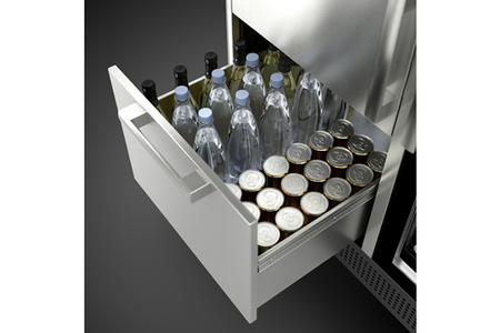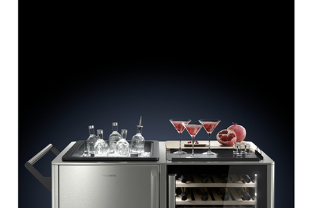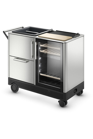 - Accessoires inclus : Plateau de service, planche à découper, porte-bouteilles amovible, bac à glace