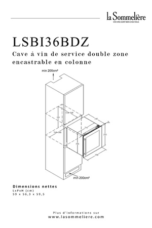- Encastrable - Capacité 36 bouteilles - Dimensions (LxPxH) : 59 x 56,3 x 59,5 cm