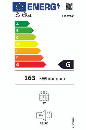 - Capacité 52 bouteilles - Dimensions (H-L-P) 114 x 59.5 x 62 cm - Classe G - 41dB
