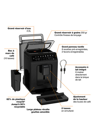 - Polyvalent : Préparez jusqu'à 8 boissons café et lactées dont ristretto et cappuccino