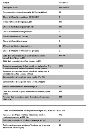 Hotte casquette Rosieres RHC940/1IN