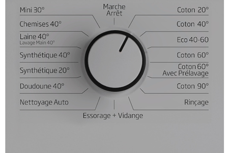 - Départ différé (1-19 h) - Programme Express 14 min - Programme laine Woolmark