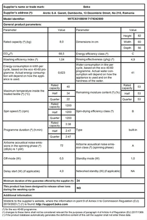 Lave-linge hublot Beko Encastrable - WITC8210B0W