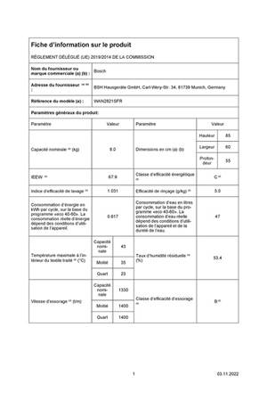 - Essorage variable jusqu'à 1400 tours/min - 75dB