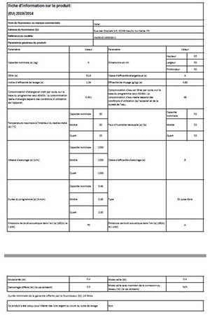 - Capacité 9 kg (4 personnes) - Tambour 63 L