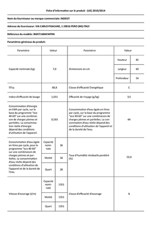 Lave-linge hublot Indesit BWE71484XWFRN