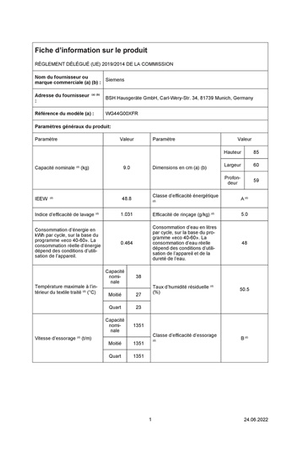 Lave-Linge Hublot Siemens WG44G00XFR