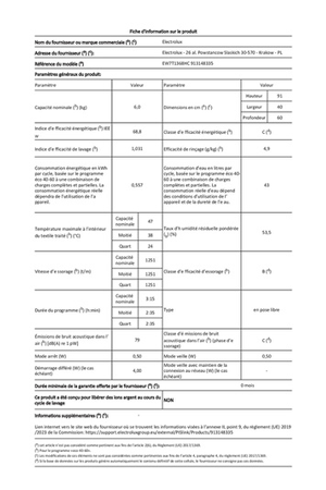 - Capacité 6kg (tambour 42 L) - Classe énergétique B