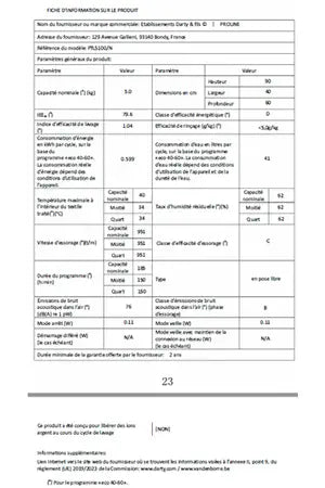 Classe énergétique - lavage |