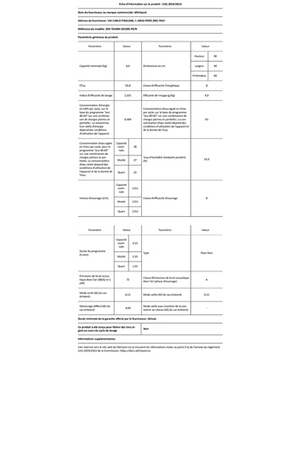 - Capacité 6kg (tambour 42 L) - Classe énergétique B