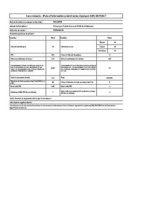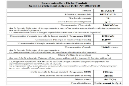 - Consommation d'eau 10 L/cycle - Classe énergétique D