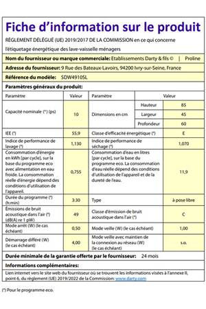 - Largeur 45 cm (10 couverts) - 49dB (classe sonore C)