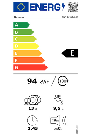 - Consommation d'eau 9.5 L/cycle - Classe énergétique E
