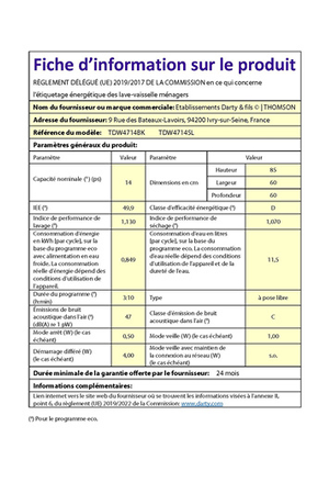 Lave-vaisselle Thomson TDW4714SL