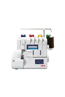 Surjeteuse-Recouvreuse ELNA 745 - Garantie 5 ans Surjeteuse raseuse, 2, 3, 4 ou 5 fils avec point de recouvrement, enfilage rapide du boucleur inférieur, basculement de l'aiguille (manipulation facile