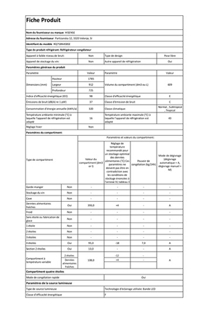 - Volume 609 L - Dimensions : (H-L-P) 178.5x91.2x72.5 cm - Classe E - 37dB