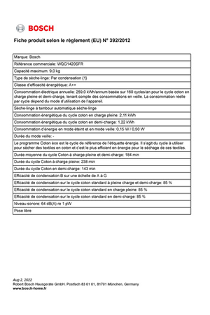 - Capacité 9 Kg - Pompe à chaleur - A++