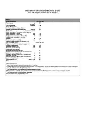 - Capacité 8 Kg - Pompe à chaleur A++