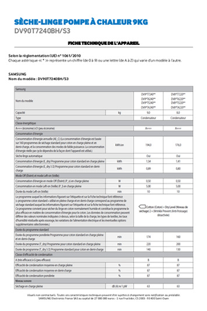 - Capacité 9 Kg - Pompe à chaleur A+++