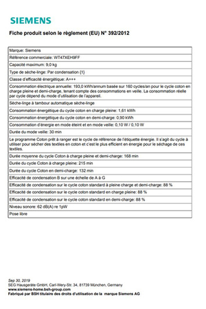 Sèche-linge Siemens WT47XEH9FF