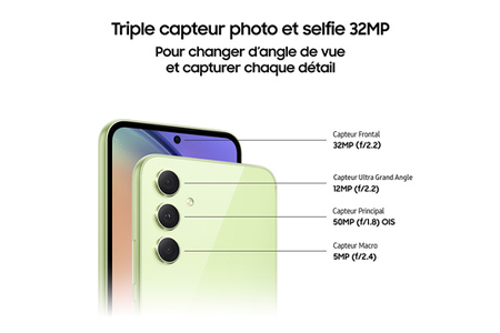 - Capteur principal 50Mp - Optique Ultra Grand Angle 12MP - Optique Macro 5MP